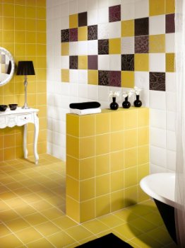 Carrelage avec carreaux céramiques en carreau de faïence, style textile "TAU CERÁMICA", capacité d'absorption en eau E>10%, groupe BIII, 19,8x19,8 cm, placé sur une surface support d'un mortier de ciment ou de béton sur parement intérieur, via adhésif cémenteux amélioré, C2 TE, avec glissement réduit et temps ouvert augmenté T100 Super "TAU CERÁMICA", sans jonction (séparation des carreaux comprise entre 1,5 et 3 mm); avec cantonnières de PVC. |