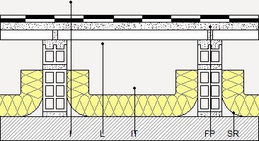 Toiture terrasse froide, inaccessible, autoprotégée, de type conventionnel, pente de 1% à 15%. FORME DE PENTES: panneau céramique creux à rainure et languette de 80x25x3,5 cm avec couche de régularisation de mortier de ciment, confectionné sur chantier, dosage 1:6, de 3 cm d'épaisseur, finition talochée, sur cloisons allégées de brique creuse en terre cuite de 29x14x9 cm, pose avec du mortier de ciment, confectionné sur chantier, dosage 1:6, disposées tous les 80 cm et avec 30 cm de hauteur moyenne, arrêts supérieurs avec des guides de mortier de ciment, confectionné sur chantier, dosage 1:6; ISOLATION THERMIQUE: feutre isolant en laine minérale; IMPERMÉABILISATION: type bicouche, adhérée, composée de membrane en bitume modifié par élastomère SBS, LBM(SBS)-30-FV, impression préalable avec émulsion bitumineuse anionique avec charges, et membrane en bitume modifié par élastomère SBS, LBM(SBS)-40/G-FP adhérée à la précédente avec un chalumeau, sans coïncidence des joints.