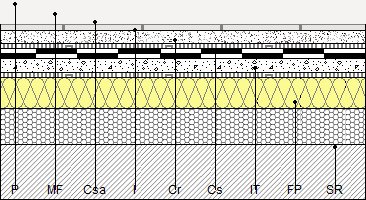 ETC140 Toiture terrasse chaude, accessible, avec revêtement de sol fixe, de type conventionnel, pour trafic piéton privé. Imperméabilisation avec des membranes bitumineuses, de type bicouche