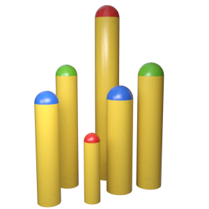 Poteau de protection circulaire, en composite, de 70 mm de diamètre et de 266 mm de longueur, de couleur jaune, fixé à l'aide de vis à béton. | ||